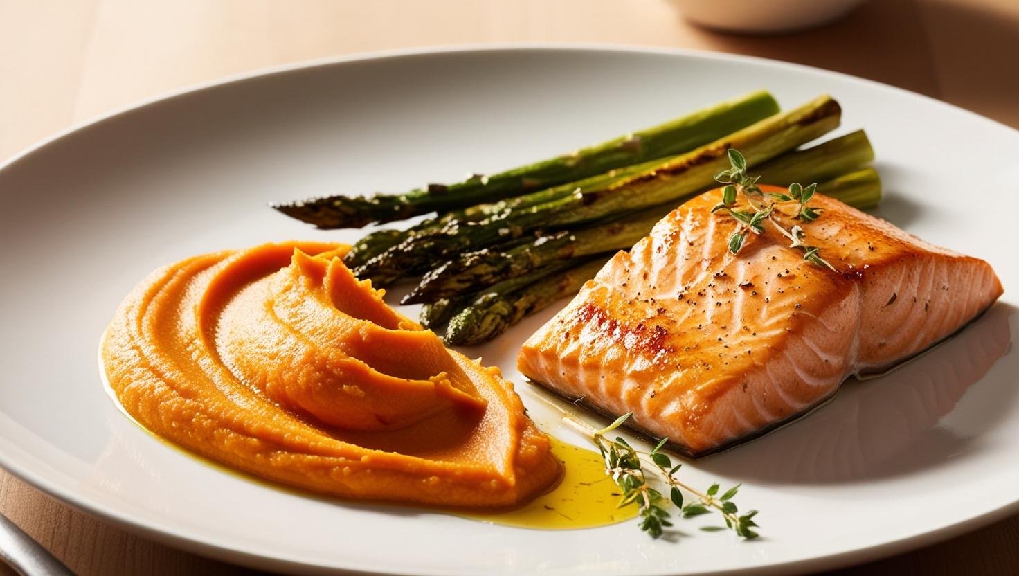Sirva acompanhado de purê de batata-doce, feito apenas com batata amassada e um fio de azeite.